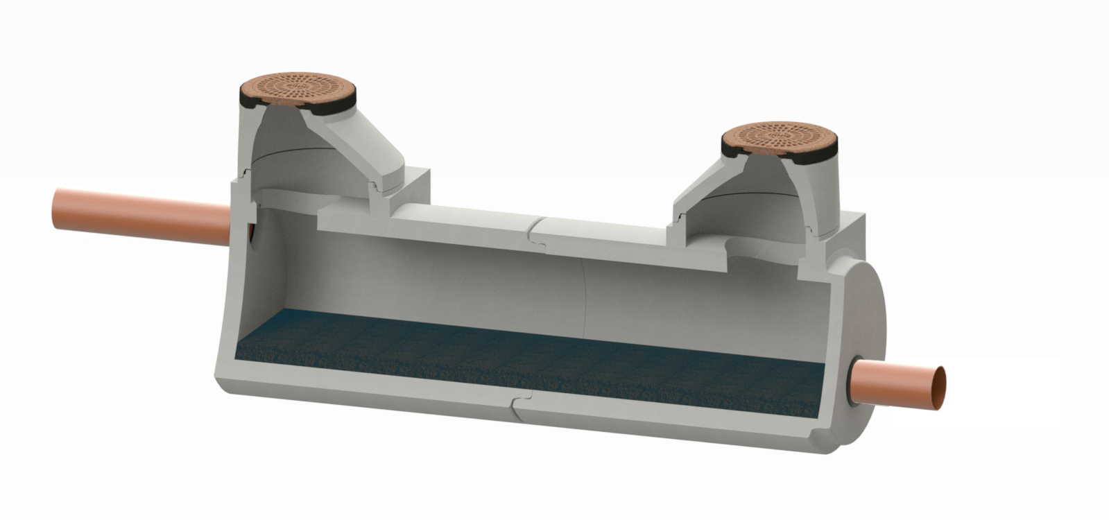 Betongrør fra DN1000 med DN650 nedstigningsmuligheter gjør tilsyn enkelt, og rørets jevne og buede overflate gjør tømming svært effektiv ved bruk av vanlig spyleutstyr.
