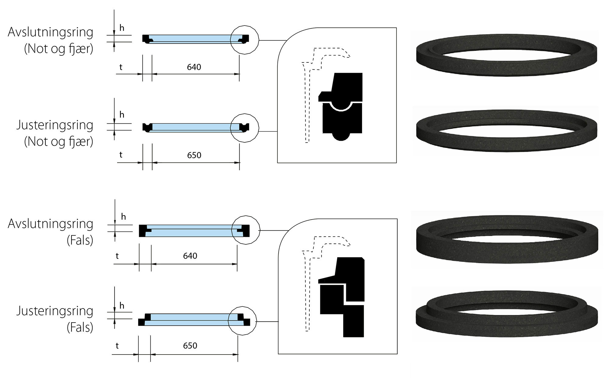 Avslutningsring i resirkulert materiale er utviklet for plassering mellom justeringsring og støpejernsramme. Avslutningsringen sikrer jevn lastoverføring fra kumramme i anleggsperioden før asfaltering og sikrer mot skade av justeringsring/kjegletopp.