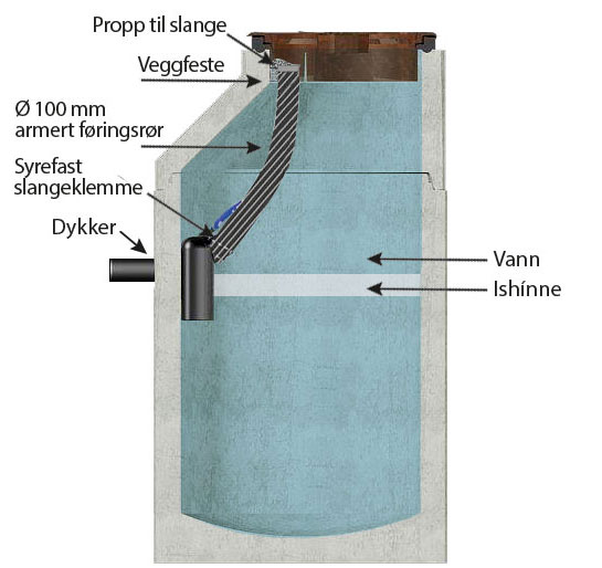 NB: I vegnormal N500 vegtunneler, står det at sandfang skal utstyres med dykker i brannsikkert materiale. I slike tilfeller bør dykker i støpejern benyttes.