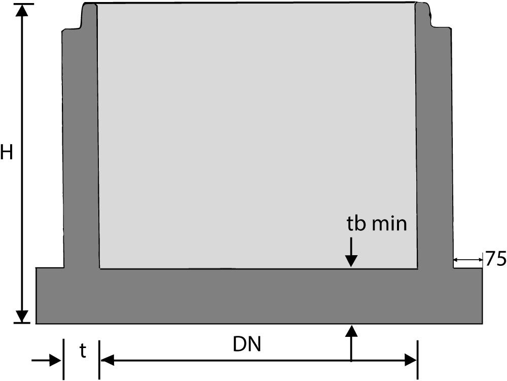 | DN | H | t | tb min | |
