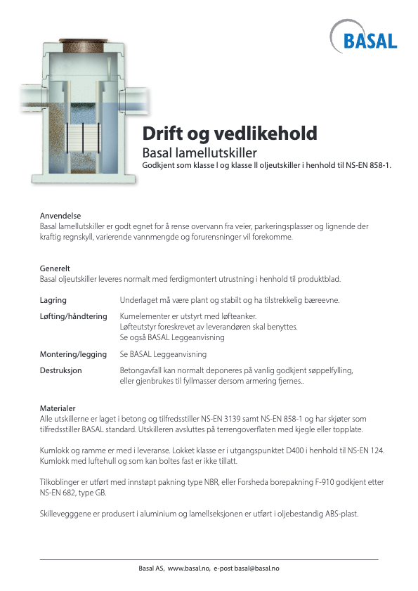1. Ved belastning lavere enn A vil lamellutskilleren ha et oljeutslipp tilsvarende en klasse l utskiller i henhold til NS-EN 858-1.