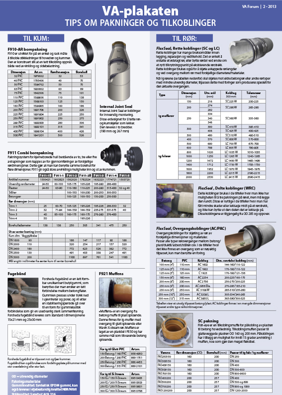 Basal Manifold F 911-5 er en borepakning for tilkobling i vannkum med opptil 6 stikkledninger DN 32 eller DN 50. Basal Manifold pakning F 911-5 fører rørene rett gjennom kumveggen, uten bøy og bend, og tilknyttes direkte til samleflensen. Dette gir en trygg og sikker montering. Rørene ligger ikke i bunnen av kummen med fare for å bli ødelagt ved nedstigning og service i kummen.