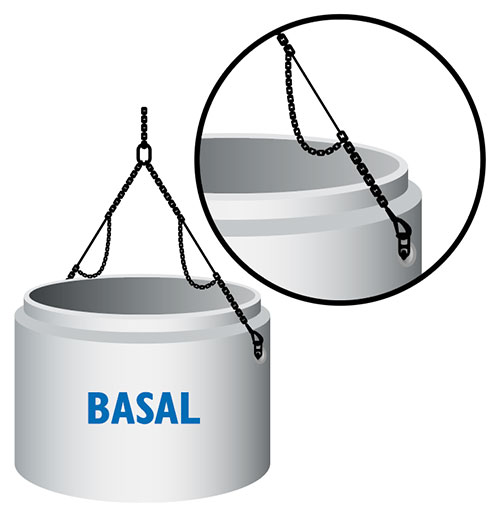 For å hindre at løfteklokken kommer ut av posisjon, bør løfteskrev til kummer ha påmontert kjettingslave. Kjettingslave eliminerer også faren for klemskade.