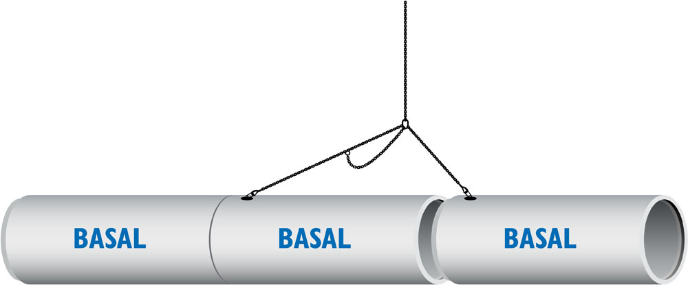 Trepart løfte –og monteringsverktøy har to like lange kjettinger som brukes til løfting og transport. Den tredje og lengste kjettingen brukes til å trekke sammen rør. Røret heises ned og legges inntil tidligere lagt rør.
