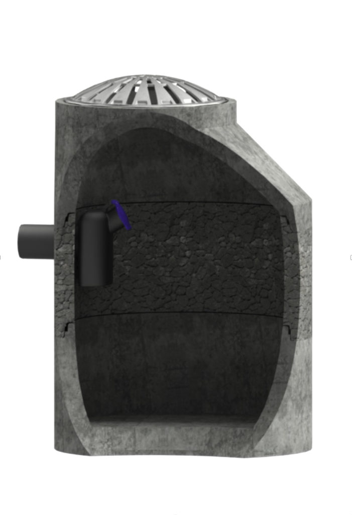 Permakum infiltrerer overvannet til grunnen rundt hele kummen, mens det meste av forurensning og partikler blir igjen i kummen